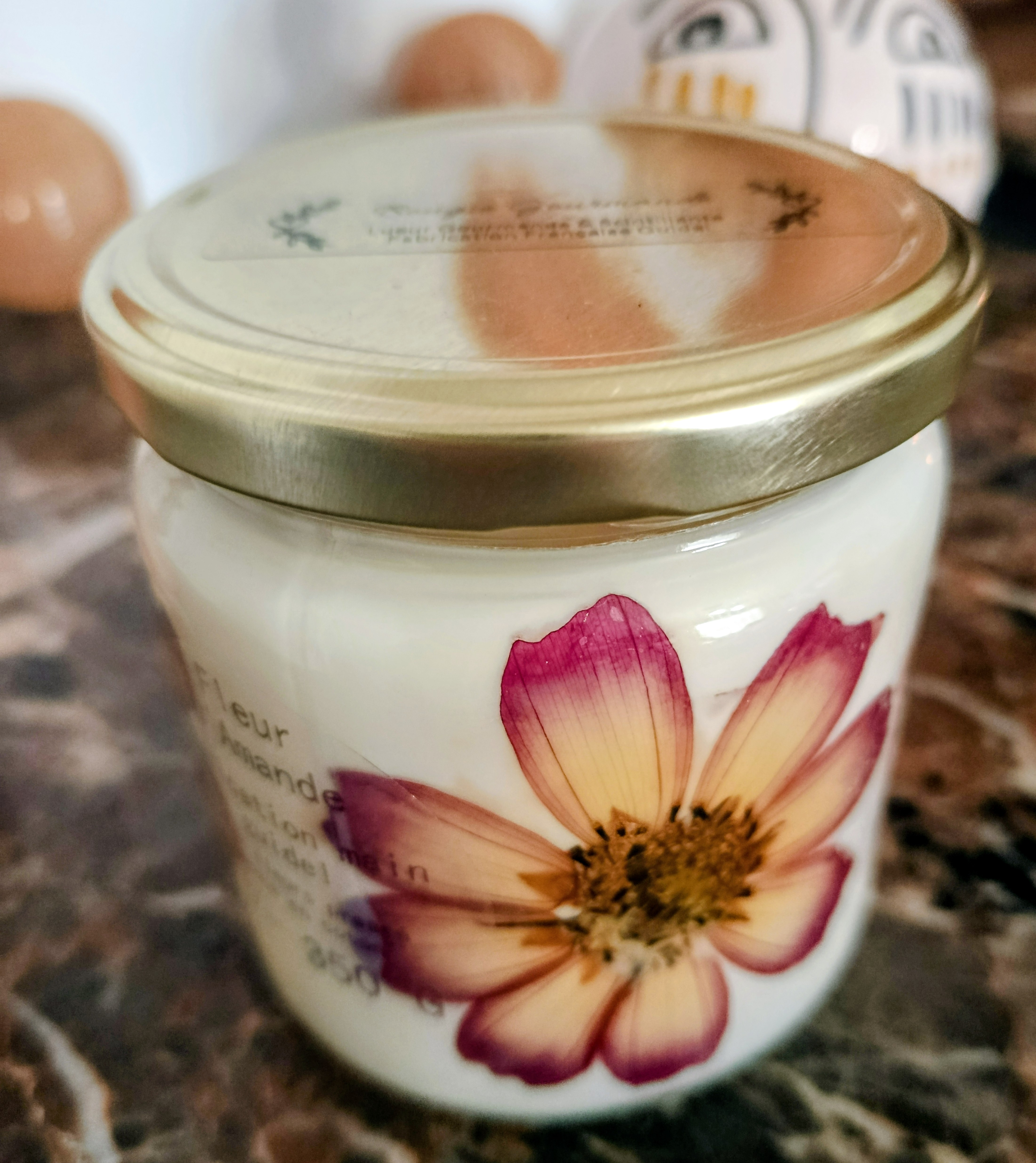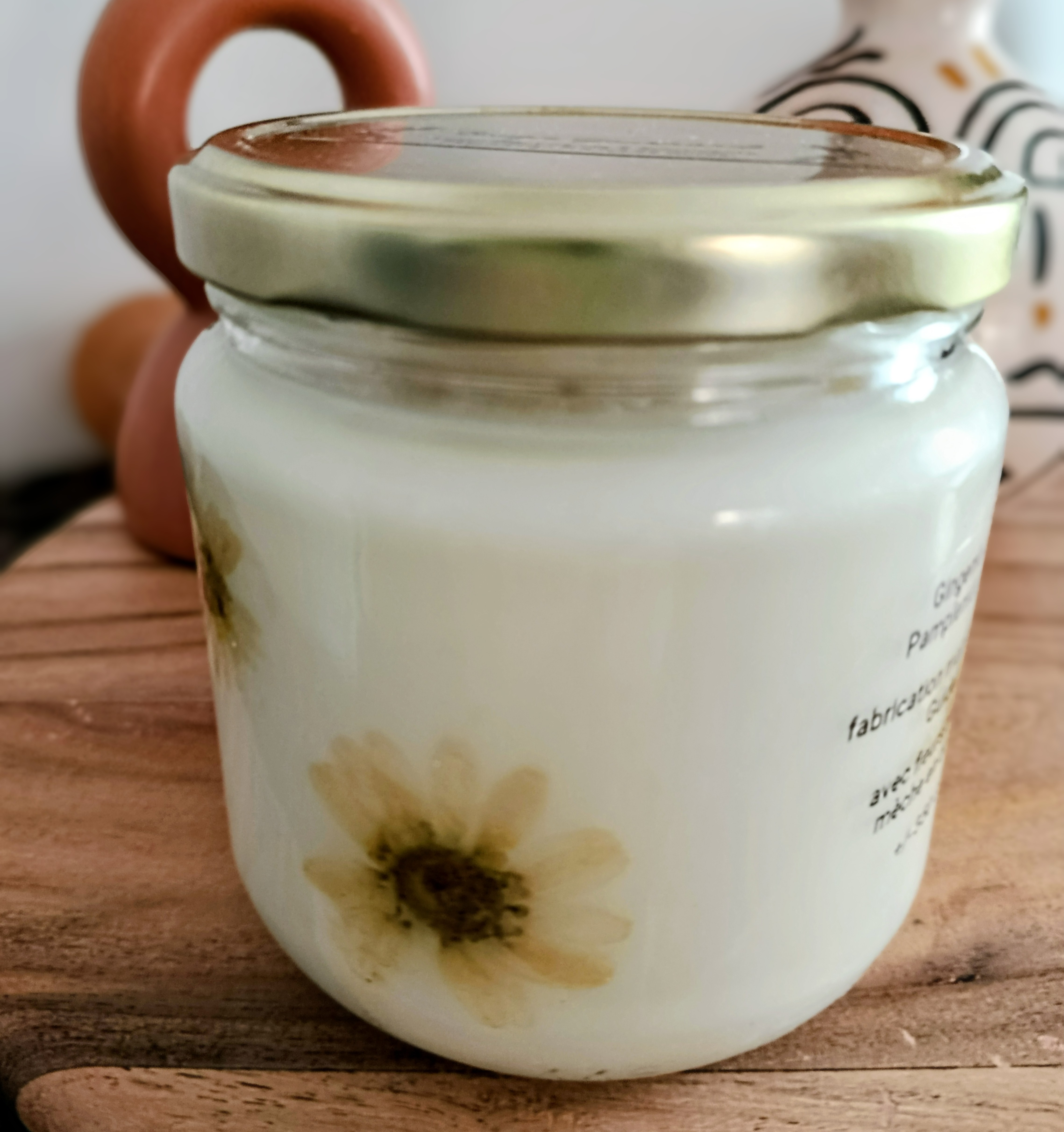 Bougie Fleur Pressée Fleur d'Amande et fleur d oranger Une Évasion Olfactive et Visuelle Offrez-vous un moment de douceur avec notre bougie délicatement confectionnée à la main, alliant cire de...