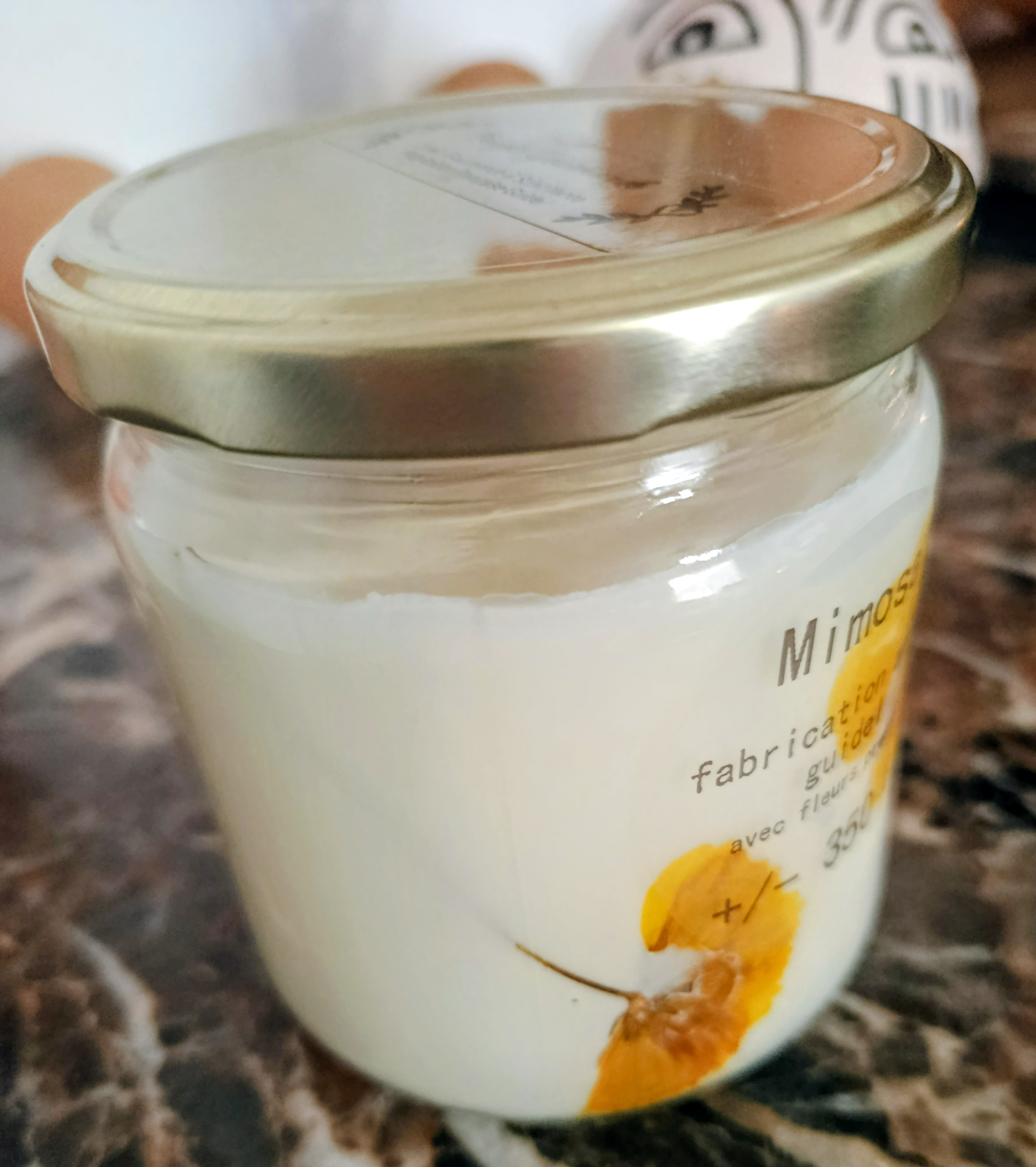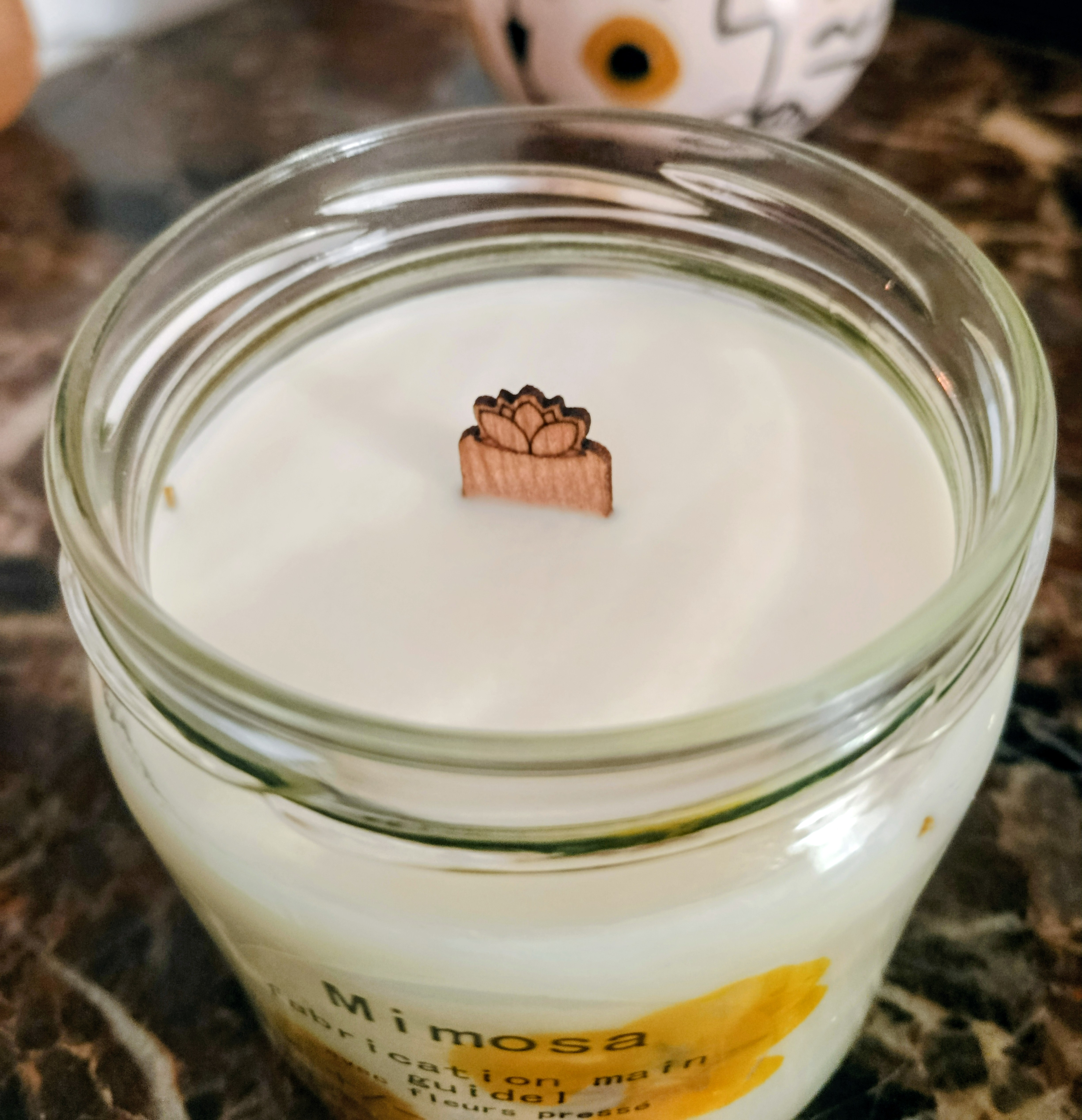 Bougie Fleur Pressée Mimosa Une Évasion Olfactive et Visuelle Offrez-vous un moment de douceur avec notre bougie délicatement confectionnée à la main, alliant cire de soja 100% naturelle et fleurs...