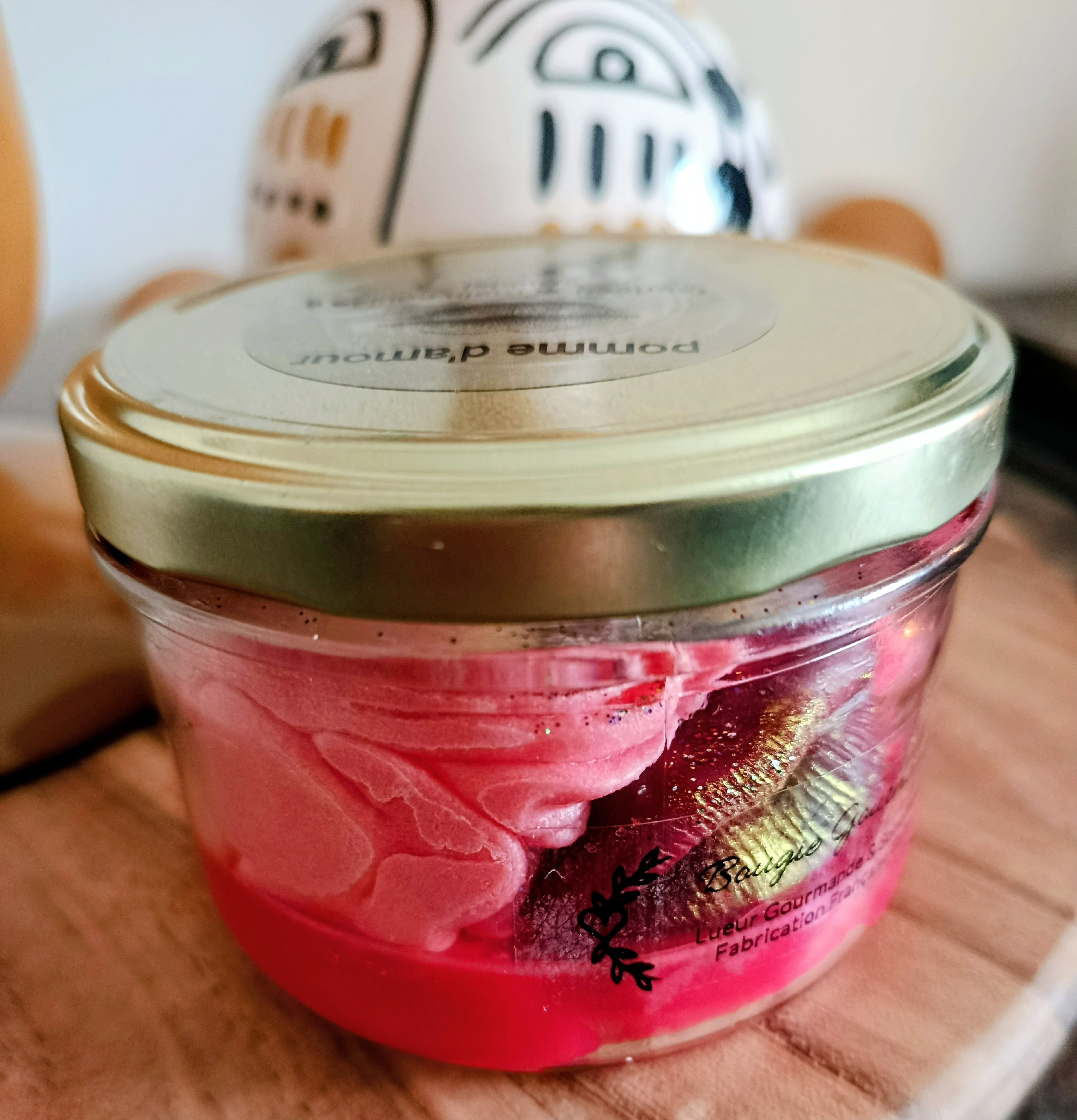Bougie Gourmande Éphémère Pomme d'Amour 150g Découvrez la magie de notre bougie gourmande éphémère de 150g, subtilement parfumée à la pomme d'amour. Une invitation à la détente et à l'évasion,...